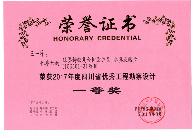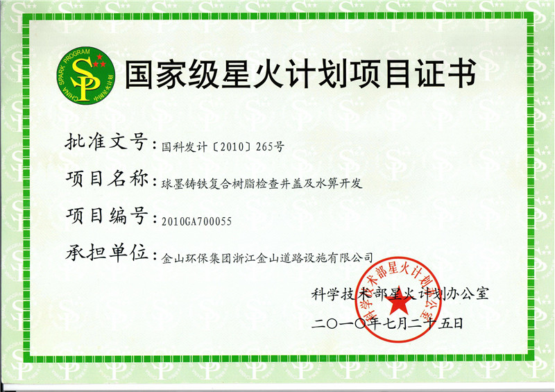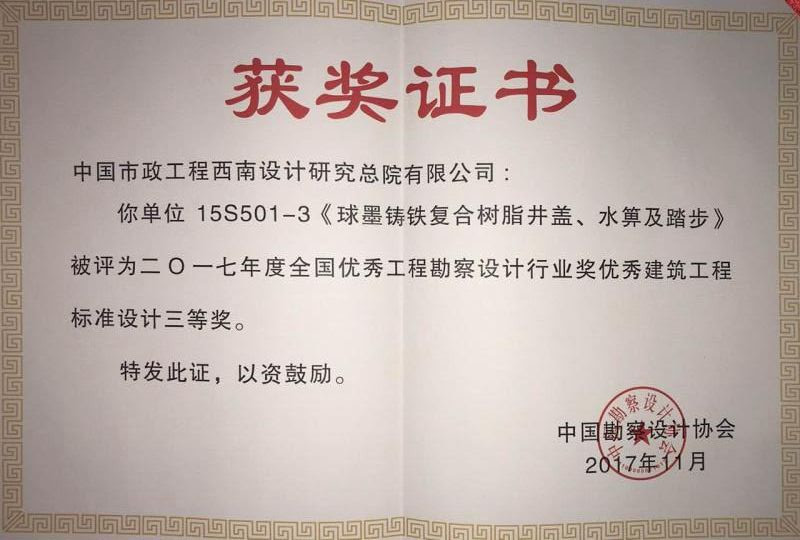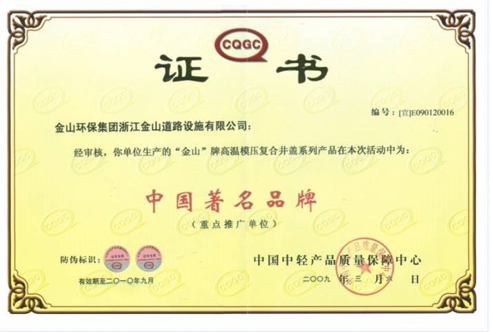 公司先后通過了ISO9001國際質(zhì)量體系認(rèn)證、ISO14001國際環(huán)境管理體系認(rèn)證、GB/T28001-2001職業(yè)健康安全管理體系認(rèn)證。擁有自主知識產(chǎn)權(quán)和十多項專利技術(shù),同時也是國家城鎮(zhèn)建設(shè)CJ/T327-2010《球墨鑄鐵復(fù)合樹脂檢查井蓋》和CJ/T328-2010《球墨鑄鐵復(fù)合樹脂水箅》兩項行業(yè)標(biāo)準(zhǔn)的唯一主編單位,2012年應(yīng)邀與石化系統(tǒng)專家一起編制并完成石油化工行業(yè)通用圖集SHT109-2013《球墨鑄鐵復(fù)合樹脂明溝蓋板及井蓋板》,“浙江省環(huán)保示范企業(yè)”、“2011年度浙江成長之星企業(yè)”、“國家星火計劃落實企業(yè)”“浙江省國家稅務(wù)局2014年度納稅信用A級”、 “溫州市2015年省科技型企業(yè)”等多項榮譽